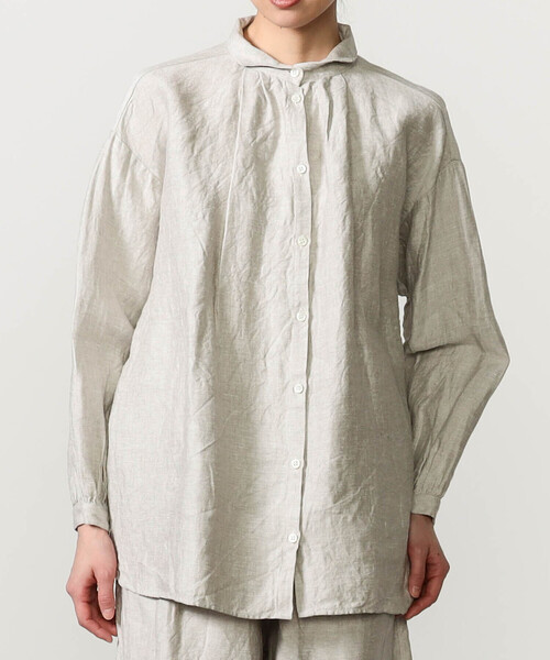 <デザイン>- シンプルな長袖シャツ- 波型の襟- フロントネックにダブルプリーツ- バックネックにギャザー- ドレープ感のある幅広の身頃<素材>- ナチュラルな風合いのリネン- 適度なハリ/シワ感- 薄手/軽量※着用、お取り扱いの際は商品についておりますアテンションタグ、洗濯ネームを必ずご確認ください。※モデル撮影画像は、光の当たり具合やパソコンなどの閲覧環境によって、実際の色味と異なって見える場合がございます。商品の色味は商品単体で撮影した詳細画像をご参照ください。メーカー品番:10311 LGALLEGO DESPORTES | ギャレゴ デスポートVirginie GallegoとFabien Desportesによって1993年に設立。「快適さ」を追求したコレクションはアンティークの影響を強く受けており、ヴィンテージのテキスタイルを新しい素材とミックスして使うことも。シンプルかつ緻密なパターンによるオリジナリティ溢れるデザインが魅力。