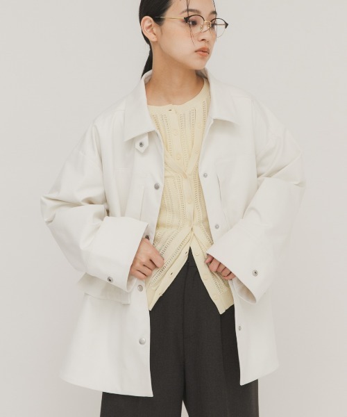 【ポケットデザインが目を惹くジャケット】大きなポケットディテールが特徴的なジャケット。オーバーサイズに仕上げており、メンズライクな印象ですが、両サイドのファスナーを開くとテントラインのシルエットに変わります。首周りもスナップ釦が設定されているので、着こなしによって留めていただくのもおすすめ。大人カジュアルコーデにぴったりな1着です。【2026 Spring/Summer】【26SS】総重量 : 約780g※商品画像は、光の当たり具合やパソコンなどの閲覧環境により、実際の色味と異なって見える場合がございます。予めご了承ください。※商品の色味の目安は、商品単体の画像をご参照ください。▼お気に入り登録のおすすめ▼お気に入り登録された商品は、マイページにて現在の価格情報や在庫状況の確認が可能です。お買い物リストの管理にぜひご利用ください。素材感透け感 : なし伸縮性 : なし裏地 : あり光沢 : なしポケット : あり