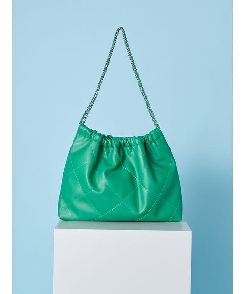 【コロンとキュートなショルダーバッグ。華やかなチェーンで使いやすさも◎】 【Design/Styling】 女性らしくも、モードさも演出できる、キルティングのチェーンバッグ。 滑りにくく肩にかけやすいショルダーチェーンは、程よい長さで使いやすいのがポイント。軽めのコーデの時にも長すぎず、アウターを着る時期でもしっかり肩にかけられる長さを計算しています。 コロンとした形は、見た目よりも容量があり、内側にはポケット付きなので実用性もばっちりです。 【Color】 カラーは3色をご用意。<GRN>、<BEG>、<DBRW>で展開しています。 ※照明の関係により、実際よりも色味が違って見える場合があります。 またパソコン・スマートフォンなどの環境により、若干製品と画像のカラーが異なる場合もございます。予めご了承ください。 商品の色味は、商品単品画像をご参照下さい。 ※商品画像はサンプルのため、色味やサイズ等の仕様に変更がある場合がございますので、予めご了承ください。