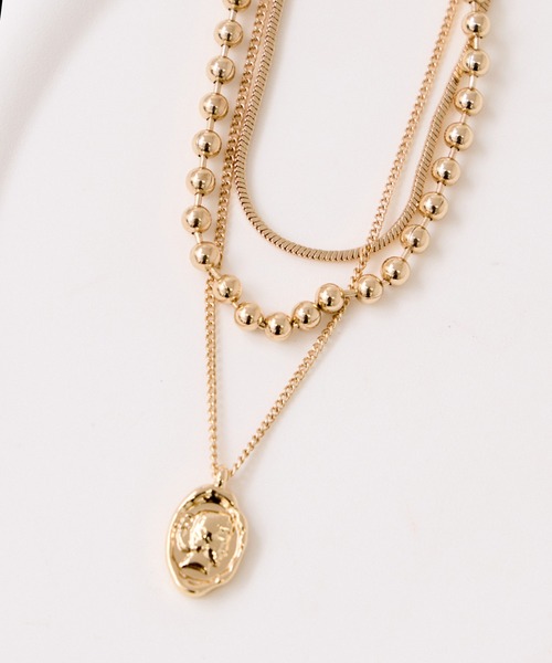 【2026 Spring】【26SS】<POINT>・ボールチェーンと華奢チェーンを組み合わせた、1本で決まるレイヤードデザイン・クラシカルなコインモチーフが、きれいめスタイルに程よいアクセントをプラス・重ね付けいらずで、スタイリングが簡単に決まります♪【カラー】ゴールドとシルバーの2色展開。【おすすめのスタイリング】ニットやシャツ、シンプルなワンピースに合わせるだけで、首元に自然な立体感を演出。通勤スタイルにはもちろん、カジュアルコーデに合わせて大人っぽさをプラスするのもおすすめです。※画像の商品はサンプルです。 実際の商品と仕様、加工、サイズが若干異なる場合がございます。