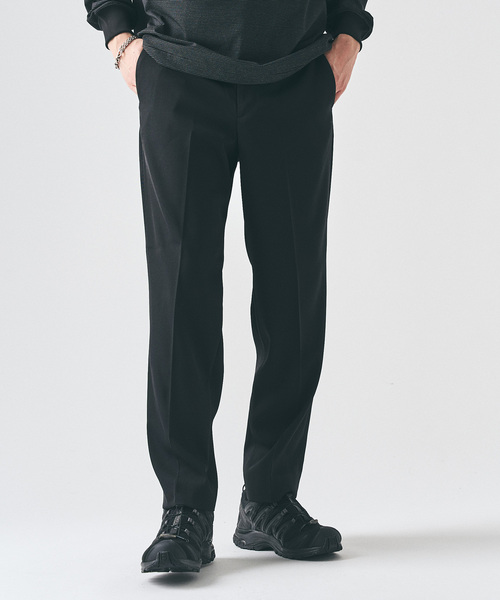 ドライタッチなストレッチツイル素材を使用した、ノータック仕様のパンツ。 すっきりとした腰まわりと、きれいなシルエットが特徴です。 軽やかな穿き心地と動きやすさを兼ね備え、長時間の着用でも快適。 カジュアルからきれいめまで幅広く対応し、トップスを選ばずスタイリングが決まります。 オン・オフ問わず活躍する、汎用性の高い一本です。 本体:手洗い可能