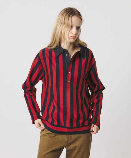 クラシックなムードが今の気分に寄り添うラガーシャツ ■デザイン 上品さ&スポーティを兼備し、着映えを叶えるストライプ柄のラガーシャツ。 ラガーシャツをベースに、襟元にはシャツのデザインを組み合わせて上品な雰囲気を添えた一着です。 リブ風に地の目を切り替えたディテールをあしらったのがさりげないポイント。 ■素材 適度に張りのあるコットン素材を使用。 ■コーディネート デニムなどのカジュアルなアイテムとはもちろん、きれいめなスカートやパンツのはずしとして着こなすのもこなれ感がありおすすめです。 ============================ 裏地:なし 透け感:なし 伸縮:ややあり 光沢感:なし ケア方法:手洗い可 ============================ 【注意事項】 ※商品に「取り扱い上の注意書き」、「洗濯表示」がございます場合は、使用前に必ずご確認ください。 ※商品画像は、光の当たり具合やパソコンなどの閲覧環境により、実際の色味と異なって見える場合がございます。あらかじめご了承ください。 ※商品の色味の目安は、商品単体の画像をご参照ください。 ※画像の商品はサンプルです。 店舗へお問い合わせの際は、全国のATTISESSION各店舗まで下記の品名/品番をお申し付けください。 品名:ATT C STRIPE RG SHT 品番:56121000003