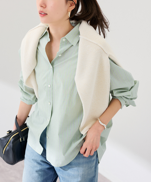 独特のシャリ感と軽やかさを備えた素材で、幅広く着回せるシャツです。春らしい爽やかなカラー展開が、いつものコーディネートに華やかさをプラス。ゆったりとした素材感と程よい落ち感で、リラックスしながらもすっきりとした印象に。シンプルながらも大人の装いに自然と馴染む一枚です。**********************透け感:あり裏地:なし伸縮性:なし光沢感:なし生地の厚さ:普通**********************※取り扱いについては、商品についている品質表示でご確認ください。※こちらの商品は、FRAMeWORK での取り扱いになります。直接店舗へお問い合わせの際は FRAMeWORK 店舗へお願い致します。※照明の関係により、実際よりも色味が違って見える場合があります。またパソコン・スマートフォンなどの環境により、若干製品と画像のカラーが異なる場合もございます。予めご了承の上ご注文ください。※商品の色味は、商品アップ画像をご参照ください。本体:手洗い可能