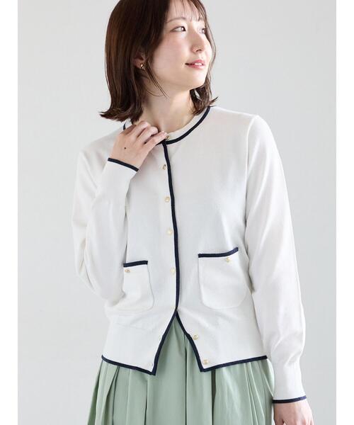 クラシカルな金釦が上品なアクセントになる、クルーネックニットカーディガン。丸みのあるネックラインで、さまざまなスタイリングに自然と馴染みます。 ボタンを留めてプルオーバー風に着用するのもおすすめ。スカートと合わせたきれいめな着こなしから、スラックスを合わせた上品なスタイルまで幅広く活躍します。 オフィスシーンからデイリーまで、シーンを選ばず取り入れやすい一枚です。※商品画像は、撮影環境やお客様のご利用のPC・スマートフォンのモニター環境などにより実物と色味に差異がある場合がございます。 ※着用画像はサンプルを使用して撮影しております。製品と一部仕様が異なる場合がございます。予めご了承ください。★《お気に入り登録》でお得な情報をGET★① 商品ページ内のハートマークをクリック!② 以下通知が受け取れます!「再入荷」「ラスト1点」「特別セール」etc..\ブランド、ショップのお気に入りも是非!/