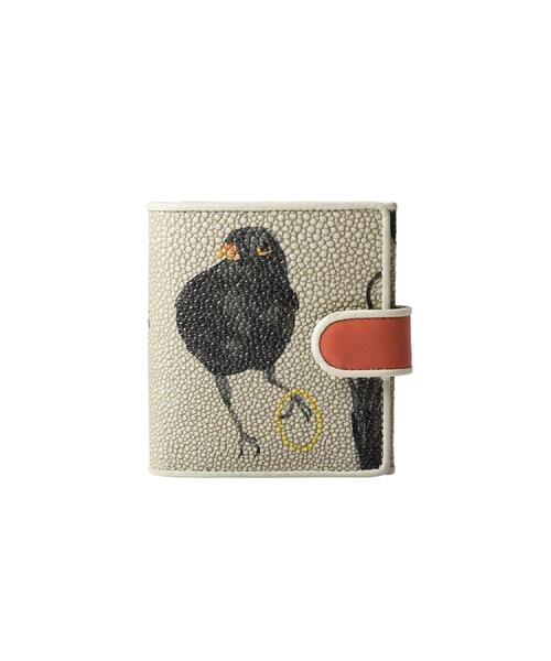 「クロウタドリ」をモチーフにした人気シリーズの2026年モデル【デザイン】美しい声で夜中でも鳴き続ける、ヨーロッパ発祥の「クロウタドリ」をプリントしました。春の訪れ感じさせるクロウタドリ。クロウタドリが見た朝焼けをイメージしたカラーリングです。小さめバッグでも収まるサイズ感ながら、厚みを抑えた二つ折り財布。カードを入れるポケットは5段+小銭入れ裏のフリーポケットが1つと、コンパクトながらしっかり収納できます。また、小銭入れは大きく開いて出し入れもスムーズです。カード入れ:5箇所 / お札入れ:1箇所 / 小銭入れ:1箇所 / フリーポケット:1箇所 / スナップボタン調節:1段階【素材】染色した牛革に型押しを施し、インクジェットプリントをしています。※柄の出方は個体差がありますのでご了承ください。ーーーーーーーーーーーーーーーーーーーーーーーーーーー◆気になるアイテムは『お気に入り登録』がおすすめです◆オンラインサイトの商品ページにある「ハートマーク」をクリックして簡単に追加できます。お気に入り登録して頂いたアイテムは・・・再入荷通知や、値下げ情報・在庫状況をメルマガにてお知らせいたします。ーーーーーーーーーーーーーーーーーーーーーーーーーーー※照明の関係により、実際よりも色味が違って見える場合があります。また、パソコン・スマートフォンなどの環境により、若干製品と画像のカラーが異なる場合もございます。店舗へのお問い合わせ商品番号:709-05728●製品寸法:00(FREE):H9.5cm W8.5cm D3cm備考:重量:約85g(サンプルサイズ)