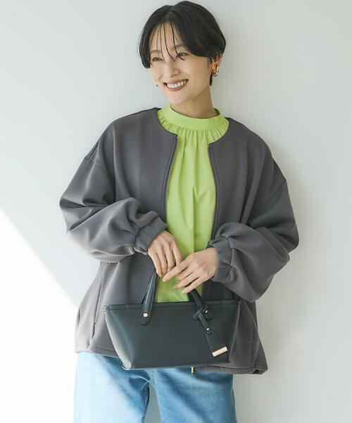 【デザイン】 シンプルで使いやすいダンボール素材を使用したジップアップブルゾン。 柔らかく、少し丸みのあるシルエットが特徴です。 ゆったりとしたデザインのため、インナーを選ばずに着こなせるのも嬉しいポイント。 軽羽織として、季節の変わり目に活躍してくれるアイテムです。 【素材感】 ポリエステルとポリウレタンの交編のダンボールニットです。 ソフトな風合いとドレープ性のある素材です。 【仕様】 ・ポケット数:横×2 ・裏地なし ※照明の関係により、実際よりも色味が違って見える場合があります。また、パソコン・スマートフォンなどの環境により、若干製品と画像のカラーが異なる場合もございます。 モデル情報:身長163cm B80 W59 H82 着用サイズ:02(M) 店舗へのお問い合わせ商品番号:153-45371 ●製品寸法: 00(XS):着丈65cm B103cm 袖丈49cm 肩幅54cm 02(M):着丈68cm B110cm 袖丈52cm 肩幅56cm 04(2LT):着丈70cm B116cm 袖丈54cm 肩幅58cm 44(3L):着丈71cm B124cm 袖丈52cm 肩幅59cm 48(5L):着丈73cm B132cm 袖丈53cm 肩幅60cm 備考:重量:約605g(サンプルサイズ)