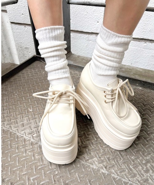 存在感・大のボリューム感たっぷりなプラットフォームのモカシンが登場!コロンとした丸みを帯びたフォルムで旬な足元に。 高めのソールだけど傾斜を感じにくい設計なので無理なく“盛れる”のが嬉しいポイント。 ソックスをレイヤードして遊べるのも嬉しいポイント。