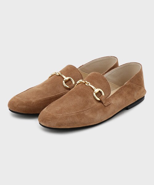 【デザイン】 本革スエードのやわらかな表情が魅力のビットローファー。 日本製ならではの丁寧な仕立てで上品に仕上げています。 かかとに芯を入れない柔らかい仕様で、足当たりがソフト。 履き始めから馴染みやすい設計です。 甲のビット金具がワンポイントでカジュアルすぎず、きちんと感もキープ。 スリップオンで着脱もスムーズなので、デイリーに活躍します。 製品の特徴について この製品は、素材の特性上、擦れなどにより表面にキズがつきやすく、また雨などで濡れると、しみが残ったり色落ちすることがあります。 以上の点をご留意の上、お買い求め下さい。 【スタイリング】 デニムに好相性。スエードの質感とビットが軽やかに引き立ちます。 ワンピースやフレアスカートとも好バランス。 甘さを抑えたい日の足元にもおすすめです。 ※照明の関係により、実際よりも色味が違って見える場合があります。また、パソコン・スマートフォンなどの環境により、若干製品と画像のカラーが異なる場合もございます。 店舗へのお問い合わせ商品番号:153-05230 ●製品寸法: 30(23.0cm):ヒール高0.5cm 幅8.0cm 35(23.5cm):ヒール高0.5cm 幅8.2cm 40(24.0cm):ヒール高0.5cm 幅8.4cm 45(24.5cm):ヒール高0.5cm 幅8.6cm 備考:重量:片足約165g(サンプルサイズ)