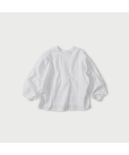 芸術的なタックスーピマオーガニックの細~い糸をバチバチに打ち込んだあと、ピーチ加工で仕上げました。ハリとしなやかさを合わせ持つバチストは、薄くて丈夫で、透き通る紙のよう。洗いざらしのまま気持ちよく着られます。身頃、袖山に施された3�oのタック。バチスト特有のシボ、繊細なはしごレース眺めているだけでうっとりするほど美しいブラウスです。