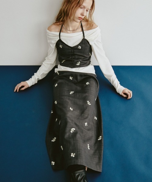 \人気のフラワー刺繍ナロースカートが、春夏にぴったりの軽やかな素材で登場!/華やかな印象を叶える、主役級スカート■デザインハリ感のあるさらっとした素材に、フラワー刺繍を施したナロースカート。ウエストはゴム仕様で、キレイめな印象ながらストレスフリーでご着用いただけます。程よくゆとりのあるシルエットで、脚のラインを拾わず綺麗なシルエットに。落ち感のある素材を使用し、スッキリとした大人らしい印象に仕上がります。後ろにはスリットを施し、歩きやすさも叶えます◎フラワーの刺繍がコーディネートを華やかに魅せてくれる一枚です。同素材のビスチェ (品番:AMIZI261002)とセットアップとしての着用もおすすめ。■素材感カジュアルからきれい目まで様々なスタイルに合わせやすい布帛素材です。サラッとした肌触りで、春夏にも快適に着用いただけます。シワにもなりにくくお手入れが楽ちんなのも嬉しいポイント。■スタイリングカジュアルなカットソーからきれいめなシャツスタイルまで幅広いアイテムと合わせやすい万能アイテム。セットアップで着用すると統一感のある洗練されたスタイリングになります。ブーツと合わせて大人っぽい印象に仕上げたり、夏にはミュールやサンダルで足元に抜け感を出したりと、ロングシーズン楽しんでいただけます。-----------------------透け感/なし光沢感/なし伸縮性/なし裏 地/なし厚 み/なし-----------------------※自宅洗濯可能(単独手洗い推奨)※濃色品は多少色落ちしますので、洗濯の際は淡色のものと一緒にしないよう、ご注意ください。※濃色品は、摩擦などにより他の衣類に色が移ることがありますのでご注意ください。※詳しいお手入れ方法は商品タグをご参照ください。【SNS掲載情報】@auntmaries.official公式Instagramアカウントにて新作情報をはじめ多彩なコンテンツを掲載しております。ぜひご覧くださいませ。【商品のお気に入り登録】完売カラーの再入荷通知やラスト1点の通知プライスダウンの通知も受け取ることができます。ぜひご登録ください◎【ブランドのお気に入り登録】新商品や再入荷など、ブランドの情報をいち早くお知らせします!ぜひご登録ください◎※ご注意※・屋外の光や照明の当たり具合で、実際の商品の色味とカラー別画像の色味に若干の違いが発生する場合がございます。・詳細画像と併せてご確認の上、ご注文いただきますようお願い致します。