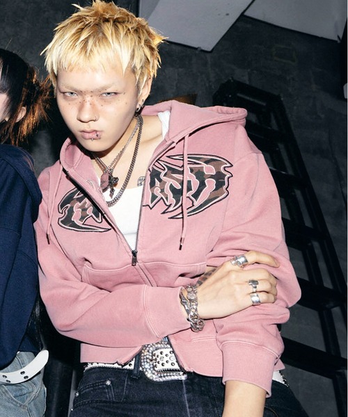 【DESIGN / デザイン】 トレンドのショート丈シルエットに、 存在感抜群のカモフラージュ柄パッチワークロゴを 落とし込んだダブルジップパーカー。 フロントのロゴデザインがコーデの主役になり、 シンプルなボトムと合わせるだけでスタイリングが完成。 無地パーカーには出せないストリート感と、 グランジライクな雰囲気を演出してくれます。 ダブルジップ仕様で、下だけ開けてインナーを見せるなど、 今っぽいレイヤードスタイルも楽しめます。 “着るだけで雰囲気が出る”主役級トップスです。 【FABRIC / 素材】 程よい厚みのスウェット素材を使用し、 ロングシーズン着用可能。 柔らかさがありつつも、 しっかりとした生地感でシルエットが崩れにくいのもポイントです。 春秋はライトアウター感覚で、 冬はアウターの中のインナーとしても活躍。 デザイン性と着回し力を兼ね備えた、 デイリー使いしやすい1着です。 ※掲載画像(商品、モデル着用とも)につきまして、撮影環境やお客様の閲覧されますパソコンや携帯電話キャリアによって、実際の商品とは多少異なった色に見える場合があります。 また表示のサイズ感も実物とは若干異なる場合もございますので、予めご了承ください。 ※タグ・バーコードのついたシールには、サイトのご案内と異なるカラー名が記載されていることもございます。ご了承ください。 - - - - - - - - - - - - - - - - - - - - - - - - - - - - 【「お気に入り登録」でお得な情報が届きます】 ・「商品のお気に入り登録」で再入荷通知、ラスト1点の通知、セール通知などを受け取ることができます。 ・「ブランドのお気に入り登録」で新商品、人気アイテムの再入荷など、お得な情報を受け取ることができます。 - - - - - - - - - - - - - - - - - - - - - - - - - - - -