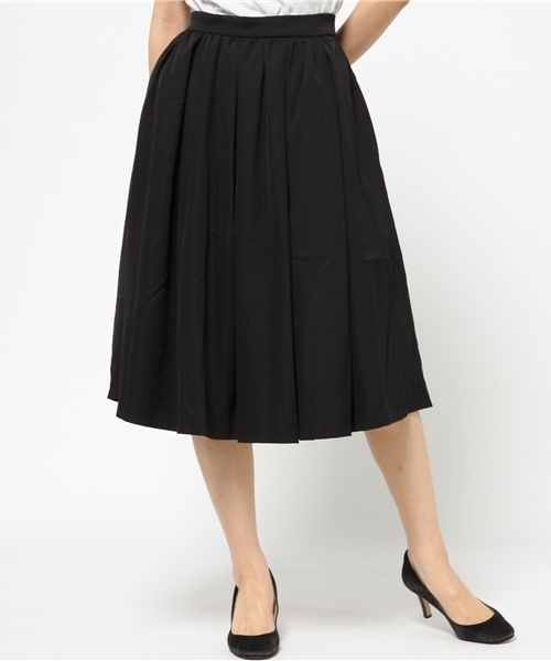 ボリュームたっぷりミディ丈スカートです。柔らかく肌触りの良いウール混上質素材を使用しています。ギャザーとタックで絶妙なボリューム感のあるミディ丈スカート。シャツをインしてウエストマークした'50年代クラシックスタイルがお勧め。