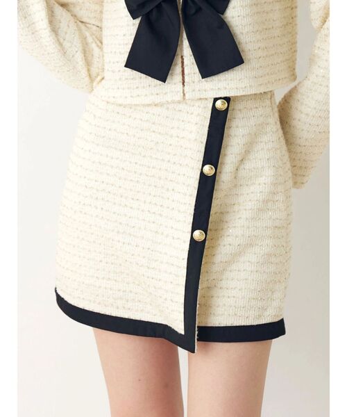 ラメのさりげない輝きが目を引くツイード調カットソー素材のミニスカート。伸縮性があり、程よく身体に沿うすっきりとしたシルエットで女性らしいバランスに仕上げています。コンパクトな丈感は脚をきれいに見せ、ロングブーツやボリュームのあるシューズとも好相性。セットアップのジャケットと合わせることで洗練された印象になり、単品ではオーバーサイズのスウェットやニットと合わせたメリハリのあるスタイリングもおすすめです。シーズンレスで取り入れやすく、着回し力の高いアイテムです。【商品特徴】透け感:なし伸縮性:なし生地の厚さ:普通サイズ感:普通裏地:ありポケット:なし