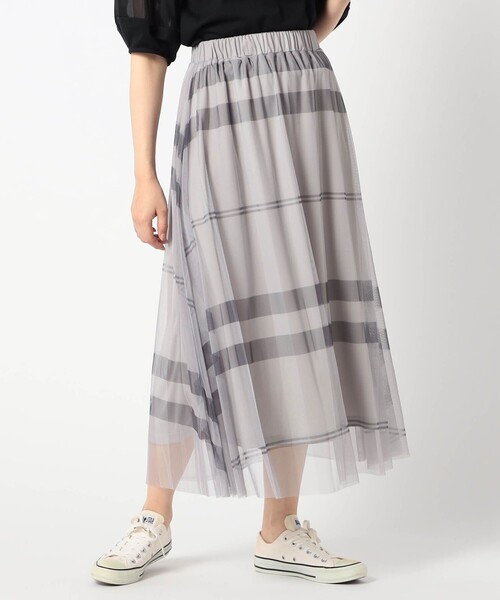 チュールチェックプリントスカート チュール素材にチェック柄をプリントしたロングスカートに新色が登場です。 動きに合わせて透け感があるチュールが揺れ、軽やかな印象です。 大きめのチェック柄により、カジュアルでヘルシーに見せてくれます。 履くだけでコーデが鮮度アップし、柄のアクセントにより、スタイリングにまとまりが生まれるアイテムです。 ■point かさつきのない、やや柔らかいチュールなので、全体的に落ち感が出てフレアーのボリュームが抑えられるのではきやすいシルエットです。 ご自宅での洗濯機洗いが可能なので、お手入れが簡単です。 トレーナーからニットまでシーズンによってトップスを変えられるので、年間を通して着用可能です。 ■detail *ウエストゴム *ポケットなし ■fabric …………………… 透け感:オフは透けあり 裏地:あり 伸縮性:あり 光沢感:なし 洗濯方法:洗濯機洗い可能 …………………… ※詳しいお手入れ方法は商品タグをご参照ください ■coordinate *スカートに特徴があるので、トップスはシンプルにショートめ丈のTシャツやプルオーバーがおすすめです。 ※画像の商品はサンプルです。実際の商品とは仕様・加工・サイズ・素材が若干異なる場合がございます。 ※ 掲載画像の商品の色味は、 撮影場所や光の当たり具合などにより色味が異なって見える場合がございます。 商品の色味は、生地アップの画像をご参照ください。 また、お客様のお使いのPC・スマートフォン等のモニター環境などにより色味が異なって見える場合がございます。 予めご了承の上ご注文ください。