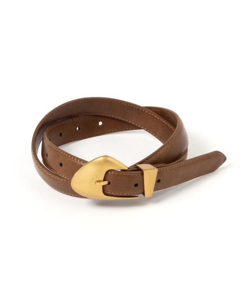 変形モチーフのバックルがアクセントになったベルト。程よいボリューム感で、スタイリングのアクセントになるアイテムです。