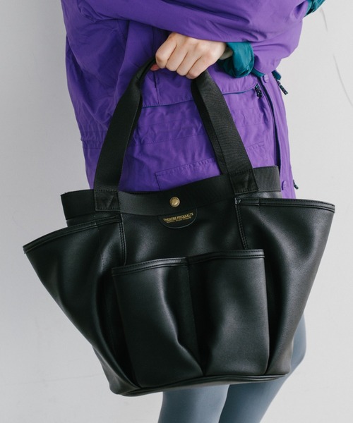 ■デザインポイント・必需品はもちろん、iPad、500mlペットボトル、も収納可能・荷物が多い日でも安心の、余裕のあるサイズ感・前面・サイド・背面・内側にポケット付き・サイドに施したTHEATRE PRODUCTSのロゴがさりげないアクセント・ややツヤ感のあるフェイクレザーを使用し、高級感のある仕上がり・デイリー使いしやすいベーシックなデザイン・通勤・通学など普段使いから、お出かけ、マザーズバッグにもおすすめ■カラー展開ブラックベージュ■サイズ展開フリー■THEATRE PRODUCTS(シアタープロダクツ)「洋服があれば世界は劇場になる」をコンセプトに2001年設立。エレガントで女性らしいウエアと、ユーモアとウィットに富んだアクセサリーなどをとおして、ファッションブランドにおきるすべての出来事を舞台にあげてスポットライトを当てる。 デザイナーを武内昭と森田美和が務める。