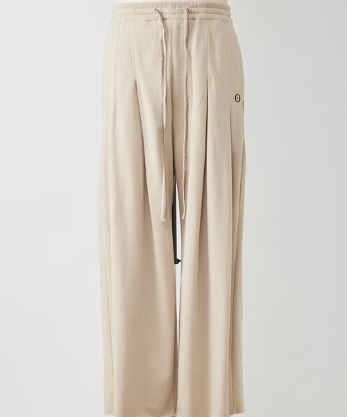 Ordinary LifeラインのBAGGY。 深い2タックを入れ、中縫いを長めに入れることによって腰回りをすっきりとさせながら大胆な太さを出しています。人間の生活に不可欠な'Eat, Sleep,Dress'(食う、寝る、着飾る)をポケットに刺繍しています。 刺繍の1km、0.2hは家から1kmくらいのスーパーにおおよそ10分くらい立ち寄る時に着る物、という意味を表しています。生地は従来のものより軽く薄く仕上げ、快適な着心地を実現した春夏仕様の裏毛を使用。 真夏でも涼しくご着用いただけます。
