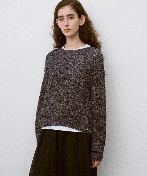 <デザイン> - クルーネックの長袖ニットプルオーバー - ゆとりのあるサイズ感 - ドロップショルダー <素材> - 特殊な加工で麻のような質感にしているコットンと、シルク糸を使用 - 絶妙なMIXカラー - 裏と表を違う編み組織で構成されている二重構造の編地 ※着用、お取り扱いの際は商品についておりますアテンションタグ、洗濯ネームを必ずご確認ください。 ※モデル撮影画像は、光の当たり具合やパソコンなどの閲覧環境によって、実際の色味と異なって見える場合がございます。商品の色味は商品単体で撮影した詳細画像をご参照ください。 メーカー品番:WXSP-UW113 UNFIL | アンフィル 2017年秋冬からスタートした日本のブランド。考え抜かれた良い素材、シルエット、ディテールを以って、時間をかけて作られた洋服。気軽さと着心地の良さを基調とした、シンプルかつ特別な洋服を展開している。