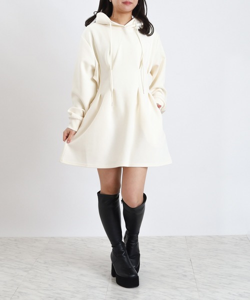 【ふんわり優しいは肌触りがpoint♪】 やさしい着心地を叶えるミニパーカーワンピース。 シルエットは程よくゆとりを持たせた、体のラインを拾いにくい設計。 ウエスト部分にタックを施すことで、ウエスト位置の高見えでスタイルアップ効果も。 カジュアルになりがちなアイテムにフェミニンテイストをプラス♪ フードの立体感が後ろ姿まで美しく見せ、コーデのさりげないアクセントに。 素材はなめらかで柔らかな肌触りが特徴のスフレタッチを使用。 リラックス感がありながらも、ラフすぎない印象に仕上げました。 ロングブーツやショートブーツと合わせたフェミニンな着こなしやスニーカーでカジュアルに決めるのもおすすめです♪ 【ASTORIA ODIER(アストリア オディール)】 「女性の”はたらく”が、もっと楽しくなる服」 なりたい自分を叶えるために毎日を大切にしている女性の気持ちに寄り添い、はたらく日も休みの日も、手に入れられる憧れをお客さまと一緒につくっていく。 自分のキレイがみつかるフェミニンカジュアルスタイルを提案します。 ◆《お気に入り登録》でお得な情報を◆ ・「商品のお気に入り登録」 再入荷、ラスト1点、セール情報などの通知も受け取ることができます。 ・「ブランドのお気に入り登録」 新商品や再入荷など、ブランドのお得な情報を受け取ることができます。