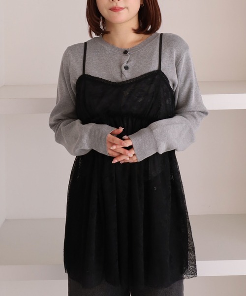 ■重ねて楽しむトレンドレース■【デザイン】・シアー感のあるレースキャミは重ねるだけでトレンド感を楽しめるデザイン・肩紐はアジャスター付きで長さ調節が可能です!・どんなインナーにも合わせやすいシンプルな形・ふわっとしすぎない柔らかい生地感で甘すぎず楽しめます【素材感】・透け感のあるレースで春夏長く使える素材感・広がりすぎない柔らかい素材感で甘くなりすぎない・重ねてもごわつかない薄手な生地感ですーーーーーーーーーーーーーーー透け感:あり裏地:なし伸縮性:なし光沢感:なし生地厚さ:普通洗濯方法:手洗い可※詳しいお手入れ方法は商品についているタグをご覧くださいーーーーーーーーーーーーーーー※ご利用のモニター環境により、実際の色味と多少異なる場合がございます。【スタイリング】・キレイめアイテムや固めな素材とのMIXコーデもおすすめ!・甘めアイテムとの着こなしも可愛いです・お持ちのトップスに重ねてトレンド感を取り入れられます♪… information … 欲しいitemをお気に入り登録(♡マークをclick) ・お買いのがし対策…完売itemの再入荷やラスト1点の情報をお知らせ ・欲しいitemをお得にget…price downになったらいち早くお知らせ ・スムーズ検索…ZOZOのお気に入りアイテムページで簡単checkできるから、再検索不要♪※他のキャンペーンにより、期間中に価格が変動する場合があります。※セールは予告なく終了させていただく場合もあります。