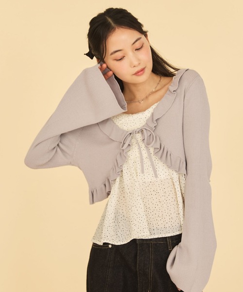 ■フリルでコーデを華やかに。女性らしく着こなすカーデSET■ 【デザイン】 ・襟と裾にフリルを施したカーディガンで、着映えします ・すっきりとしたフレアスリーブで腕がすらっと長く見えます ・ビスチェはふんわりと上品なペプラムシルエット ・小さめのドットがさりげなく、女性らしい印象に ・カーディガン、ビスチェを別々に着回しできる優秀アイテム 【素材感】 ・カーディガンはややシャリみのある素材で春先にぴったり ・伸縮性があり、柔らかい肌当たりで着心地も抜群 ・ビスチェは表面感のある素材でシンプルになりすぎない ・さらっと軽い着心地でシワも気になりにくい ーーーーーーーーーーーーーーー 透け感:なし 裏地:あり 伸縮性:あり 光沢感:なし 生地厚さ:普通 洗濯方法:手洗い可 ※詳しいお手入れ方法は商品についているタグをご覧ください ーーーーーーーーーーーーーーー ※ご利用のモニター環境により、実際の色味と多少異なる場合がございます。 【スタイリング】 ・デニムやスラックスを合わせて、甘すぎず大人っぽく着こなせる ・カーゴパンツやスウェットパンツと合わせて、トレンドライクなスタイリングに ・カーディガンをキャミワンピースに羽織ったり、ビスチェを別のアイテムにレイヤードしたりと、幅広い着回しが楽しめます … information … 欲しいitemをお気に入り登録(♡マークをclick) ・お買いのがし対策…完売itemの再入荷やラスト1点の情報をお知らせ ・欲しいitemをお得にget…price downになったらいち早くお知らせ ・スムーズ検索…ZOZOのお気に入りアイテムページで簡単checkできるから、再検索不要♪ ※他のキャンペーンにより、期間中に価格が変動する場合があります。※セールは予告なく終了させていただく場合もあります。