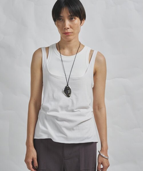【2026SS】 アレンジ幅の広い、前後表裏4way仕様のタンクトップ ■サラリとしたタッチのシアーフライスを使用したタンクトップ。 ■前後・表裏の4wayでの着用が可能な着回し力の高いデザイン。 ■ボタンを表にした際の前立て部分の配色使いがポイント。 ■シアーアイテムのインナー使いの際は、ボタンを下から開けて裾から少しのぞかせるのがおすすめ。 ■盛夏シーズンは、Tシャツやタンクトップの上に重ねたり下に重ねても◎。 ■様々なレイヤードスタイルを楽しめ、着こなしの幅を広げてくれるアイテム。 【COLOR】 オフホワイト:ホワイト×ライトベージュのヘルシーなカラー。 ブラウン:チャコールグレー×ブラウンのシックなカラー。 ---------------------------------------------------- 洗濯方法:手洗い可 透け感:ややあり 裏地:なし 伸縮性:あり 光沢感:なし ---------------------------------------------------- ― GEMINI(ゲミニー) ― 双子/双子座ラテン語で双子の意味。 もう一人の私に選ぶ服 双子のようにいるもう一人の私に、服を選ぶ感覚がある。 自分の中の二面性に向き合って、気分やシチュエーションの数だけ服を選ぶ。 服と体温が同じになったとき、もう一人の私になれるような気がする。 そうやって私は、自分を新しく変えていく。 【注意事項】 ・画像の商品はサンプルです。実際の商品と仕様、加工が若干異なる場合があります。 また 、パソコンやスマートフォンのモニター環境などにより、色味が違って見える場合があります。 ・店頭及び屋外での撮影画像は、光の当たり具合で色味が違って見える場合があります。 商品の色味は、スタジオ撮影の画像をご参照ください。 ・入荷状況により、お届け予定が前後する場合があります。 ・お客様への発送が店頭販売より遅れる場合があります。 ・追加生産商品は、一部の店舗、通販で販売中の場合があります。 予めご了承下さい。 【気になるアイテムは、「お気に入り」登録を】 ハートマークをクリックしておくことで、スムーズにお買い物が楽しめます。 ・ラスト一点のお知らせ ・再入荷のお知らせ ・SALEのご案内