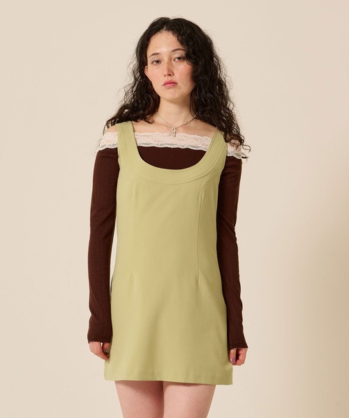Uネックで前下がりを大きくしたデザインが、すっきりとした印象をメイクするミニ丈ジャンスカ。 カジュアルにもきれいめにもスタイリングが叶うアイテムです。 point ・通年使える素材感 ・ウエストがシェイプしており、スタイルアップ効果も◎ ・レース付き オフショル ロンT(tnj511-1217)と合わせてのスタイリングで、ネック部分からレースを見せるコーディネートがおすすめ ・後ろ中心にシルバーチャーム付き透け感/なし 伸縮性/ややあり 裏地/あり 洗濯不可, タンブル乾燥不可, アイロン可・スチーム不可 <お届け時のシワにつきまして> ページで着用している商品は撮影前に全てプレスをかけております。(バッグ・小物等除く) その為お送りする商品は畳みジワや細かいシワがついている場合がございます。 <色移り・色落ちについてのご注意点> この商品は摩擦(特に湿った状態での摩擦)や汗や雨などでぬれた時は他の衣料や下着に色が移る事がありますので、十分ご注意ください。 <臭いについてのご注意点> 染料や加工を加えた際の臭いが製品に付着している場合がございます。 臭いが気になる場合には、風通しの良い日陰の場所で陰干しをしてください。 <写真・画像・カラーについて> 商品のカラーは撮影環境・視認性を考慮した色調整を行っておりますが、撮影条件やブラウザ、パソコンの環境により、実物と異なる事がございます。また、モデル画像・スナップ画像は撮影条件の影響を大きく受けやすくなっております。商品単体の画像をご参考にしていただくようお願いいたします。 <製品のお取り扱いについて> 取り扱いについては、商品についている品質表示に詳細を記載しております。必ずご確認ください。 <洗濯について> お洗濯は商品についている洗濯絵表示に従って行ってください。