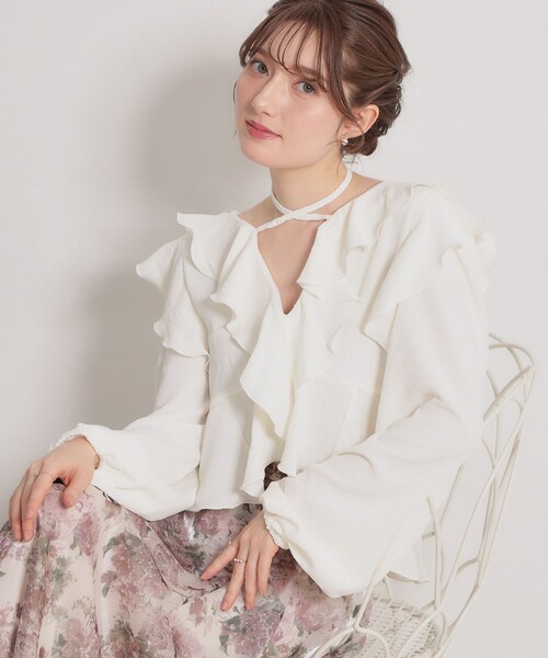 【デザイン】 立体的なフリルが顔周りを華やかな印象にしてくれるラッフルブラウス。 胸元のリボンがアクセントとなりつつ、首回りはすっきりとした印象のため、抜け感がでます◎ ※この製品は、太陽光線中の紫外線(UV)を通しにくくします。この効果は永久的ではありません。 ■サイズ表示について ※バイイング商品のため下げ札サイズ表記とワールドサイズ表記が異なります。製品寸法をご確認くださいませ。 ワールドサイズコード38=製品サイズ表記M ワールドサイズコード40=製品サイズ表L ※照明の関係により、実際よりも色味が違って見える場合があります。また、パソコン・スマートフォンなどの環境により、若干製品と画像のカラーが異なる場合もございます。 モデル情報:身長163cm B81 W56 H82 着用サイズ:38 店舗へのお問い合わせ商品番号:508-85056 ●製品寸法: 38:着丈42cm B92cm 袖丈62cm 肩幅36cm 40:着丈44cm B94cm 袖丈63cm 肩幅37cm 備考: