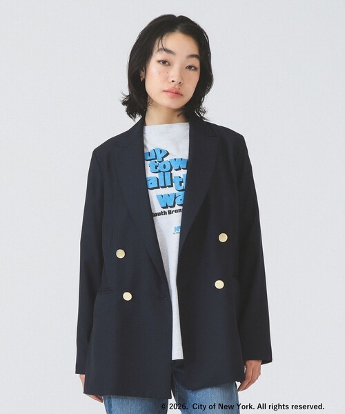 大人の日常をクラスアップ ■デザイン 毎年人気の4ボタンダブルブレザーが、さらなる進化を遂げて今年も登場。 襟先が少し尖ったシャープなデザインが、顔周りをスッキリと華やかに見せてくれます。アクセントの金ボタンが、トラッドながらも洗練された大人の表情を演出。 定番カラーに加え、柔らかな印象のベージュが仲間入りしました。オンオフ問わず、羽織るだけでスタイリングを格上げしてくれる主役級のジャケットです。 ■コーディネート デニムを合わせたカジュアルスタイルはもちろん、スラックスやワンピースと合わせたきれいめなオフィススタイルにもおすすめ。 程よいきちんと感があるため、ブラウスからカジュアルなTシャツまで、幅広いインナーとのレイヤードを楽しめます。 ■ディテール 前作よりもワンランク上の縫製工場で仕立てることで、ステッチの美しさや立体的なシルエットといった「価値感」をプラスしました。見た目の美しさと動きやすさを両立した、クオリティの高い1着。 ■サイズ 多くのお客様にご好評いただいている前作モデルのサイズ感を踏襲。 縫製工程の見直しにより、さらに体に馴染みやすく、ストレスフリーで快適な着心地を実現しています。 ■素材 少し薄手で柔らかな風合いの素材へリニューアル。 生地の質(背景)にもこだわり、より上品な質感へとアップデートしました。ポリエステル×レーヨンの混紡素材は、なめらかな肌触りと適度な落ち感が特徴です。 ■ケア方法 ドライクリーニングのみ可(詳細は商品についている品質表示ラベルをご覧ください) ※汗や水に濡れた場合、光沢の変化やシミの原因となる可能性があるためご注意ください。 ※付属の金ボタンは繊細なため、衝撃による表面のキズには十分ご注意ください。 Model:H161 B77 W58 H86 Size:1 ※光の当たり具合やパソコンなどの閲覧環境によって、実際の色味と異なって見える場合がございます。予めご了承ください。 ※商品の色味は商品単体で撮影した画像をご参照ください。※商品リニューアルに伴い、昨年のモデルから素材混率に変更があります。