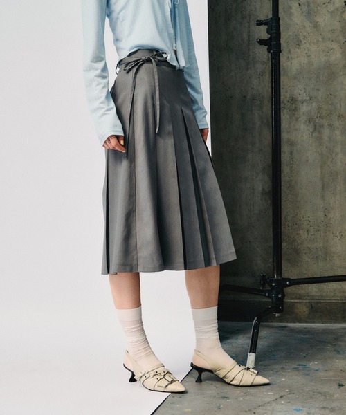 ーーーリボン取り外し可!シンプルなプリーツミディスカートが登場★ーーー【POINT】・存在感のある大きめボックスプリーツが目を惹く、ミディ丈スカート。・共地ベルト付きで、ウエストマークなどお好みのアレンジが可能。・程よい丈感とボリュームバランスで、韓国ライクなムードを演出できる1着です。【STYLING】・コンパクトなトップスを合わせて、バランスの取れた韓国っぽコーデがおすすめ。・足元はミュールやローファーにソックスを合わせるとバランスが取れて◎ 【FABRIC】・程よくハリのある素材を使用し、プリーツをキープ。・動くたびにきれいなシルエットが出るのもポイントです。<3.3 Field Trip/3.3フィールドトリップ>ブランド名にある3.3はその名の通り「3.3平方メートル」を意味し、3.3 Field Tripと一緒なら、いつでもどこでも快適にリラックスできるという意味が込められています。「We love Brooklyn」をモットーに、実用的でありながらスタイリッシュなルックとナチュラルさを追求したALANDのプライベートブランドです。・・・・・・・・・・・・・・・・・・・・・・透け感:透けない(ライトグレーで計測しています)伸縮性:あり生地の厚さ:普通裏地:あり・・・・・・・・・・・・・・・・・・・・・・▼取扱いSHOP:ALANDファッション、雑貨、コスメなどさまざまなブランドを取り扱う韓国発のストリートセレクトショップ。2020年秋、待望の日本上陸を遂げたALANDは、韓国の新進デザイナーとサブカルチャーを発掘し、その価値を最も魅力的な方法でマーケットに発信する唯一のライフスタイル型ストリートセレクトショップです。【お気に入り登録がオススメ】・商品のお気に入り登録「在庫残りわずか」「完売カラーの再入荷」「セール」の通知を一足早く受け取ることができます。気になった商品はまずお気に入り登録へ!・ブランドのお気に入り登録お気に入り登録したブランドの新作や再入荷等、ブランドのお得な情報を定期的に受け取る事が出来ます。※屋外の光や照明の当たり具合で、実際の商品の色味とカラー別画像の色味に違いが発生する場合がございます。 商品の色味はスタジオ撮影の詳細画像にてご確認ください。※サンプルにて撮影をしておりますので、実際の商品とは仕様や加工・サイズ等が若干異なる場合がございます。