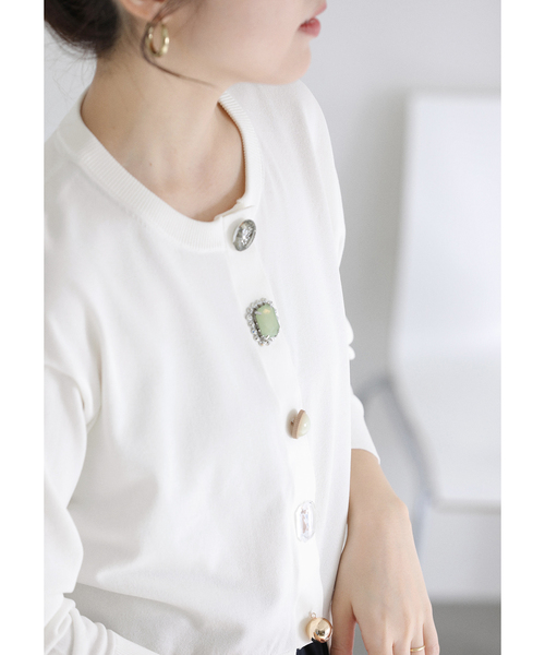 先方品番:6265-685※サイズについて弊社販売サイズ:メーカーサイズフリー:FREE※カラーについて弊社販売カラー:メーカーカラーホワイト(010):05.WHITEグリーン(030):33.APPELEネイビー(040):98.NAVYピンク(063):52.L.PINK【2026SS】LaTotalite今年も人気の華やぎカーディガンが春らしいカラーで登場!コーデの主役になる着映えカーディガン。スカートを合わせたフェミニンスタイルから、ワイドパンツを合わせた大人カジュアルな着こなしまで、ボトムを選ばない着回し力抜群のアイテムです。ビジューボタンがアクセントとなり、一枚で女性らしく華やかなスタイルが完成します。【TORRAZZO DONNA/トラッゾドンナ】デイリーにオシャレを楽しむ女性にさりげなく時代感を取り入れたトラディショナルなモダンカジュアルを提案しているブランド。**********************透け感:なし裏地:なし伸縮性:あり光沢感:なし生地の厚さ:普通**********************【スタッフ着用コメント】《スタッフ名:mizuki》身長:160cm/体型:普通/普段サイズ:S~M/着用サイズ:Fサイズ感:コンパクトなサイズ感。ハイウエストのボトムと合わせるとバランスが良い。素材感:程よく厚みがあり、シャリのあるニット素材。。着心地:伸縮性があり柔らかいので楽な着心地。**********************※取り扱いについては、商品についている品質表示でご確認ください。※照明の関係により、実際よりも色味が違って見える場合があります。またパソコン・スマートフォンなどの環境により、若干製品と画像のカラーが異なる場合もございます。※商品の色味は、商品アップ画像をご参照ください。着用モデル身長: 160cm 着用サイズ:フリー本体:手洗い可能