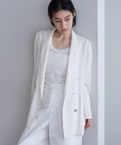 【2026 Spring & Summer Pre Order】 コーデの完成度が上がるシアージャケット SHENERY名品・定番ジャケット。 ベーシックな形ですが、シアー素材で軽やかに心地よく着ていただけます。 トリアセテートの素材を使用しており、なめらかさや綺麗なドレープがでます。 長時間着てもシワになりにくく、またウォッシャブル可能でお手入れも簡単で 多くの方に愛用頂いているジャケットです。 少しゆとりをもたせたサイズ感に変更しました。 - - - - - - - - - - - - - - - 透け感:あり 裏地:なし 伸縮性:なし 光沢感:なし 生地の厚さ:薄い 取り扱い:手洗い可 - - - - - - - - - - - - - - - ※撮影環境により、光の当たり具合で色味が違って見える場合があります。あらかじめご了承下さい。 ※画像はサンプルの為、実際にお届けする商品と仕様が異なる場合がございます。 ※手洗いはもみ洗いを避け、押し洗いをしてください。 ※蛍光増るアイテムを登録≫白剤が入っていない洗剤をご使用下さい。 ※色落ちしますので他のものと分けて洗濯してください。 ※多少縮むことがあります。 ※長時間水に浸けておいたり、濡れたまま放置しないでください。 ※アイロンは当て布をしてかけて下さい。 ※濃色品は過度の摩擦や濡れた状態での摩擦で色落ちしたり、他の衣類や持ち物に色移りすることがあります。 ■「商品のお気に入り登録」で ハートマークをクリックし、お好きなカラーを選んでお気に入りに登録すると 入荷情報や残り1点の通知、完売カラーの再入荷、セール情報などを受け取ることができます。 登録して頂いた商品だけが対象となる、あなただけのタイムセールが開催されることも! ■「ブランドのお気に入り登録」で 新商品や再入荷など、いち早くSHENERYのお得な情報を 受け取ることができますので、ご登録をおすすめします!