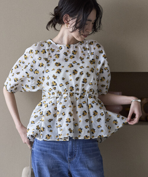 2026 Spring & Summer item オケージョンにも対応。 花柄刺繍が映える、上品シアーブラウス。 ●ハリ感のあるシアー素材に、立体感のある花柄刺繍を施した今年らしいブラウス ●Firsthandで人気のボリュームスリーブデザインを採用 ●ウエストやや高めの切り替えから広がるフレアシルエットで、自然なスタイルアップ効果 ●ラグラン切り替え仕様で、肩幅をすっきり見せるデザイン ●プリントではなく刺繍素材のため、甘さを抑えたクリーンで大人っぽい印象 ●後ろ中心に配したプレートロゴが、さりげないアクセントに ●デニムからきれいめボトムまで幅広く合わせやすい一枚 おすすめコーディネート デニムやワイドパンツと合わせて、程よく抜け感のある大人カジュアルに。 スラックスやレーススカート、ヒールを合わせれば、きちんと感のあるオケージョンスタイルにも対応。 ジャケットを羽織れば、学校行事やきれいめなお出かけにも活躍します。 ■シリーズ商品 3411234400022:フラワーシアージャガード コクーンスカート 3446234400009:フラワーシアージャガード ドッキングオールインワン ※掲載画像の商品の色味は、屋外や屋内の光の照射や角度により実物と色味が異なる場合がございます。また表示のサイズ感と実物は若干異なる場合もございますので、予めご了承ください。 ※着用、お取り扱いの際は、商品についている品質表示とアテンションタグを必ずご確認下さい。 【Firsthand / ファーストハンド】 Fashion , Sustainable , Art をテーマに、デザイン性やクォリティー、モノ作りなど、クリエイティブを重視したサステナブルなコンセプトストア。 ここでしか出会えないブランドやアイテム、ここでしかできない実体験、新しくスタイリッシュなカルチャーとファッションをここから発信していきます。フリークスストア等を構えるデイトナインターナショナルが発信するブランドです。 Instagam : @firsthand__official