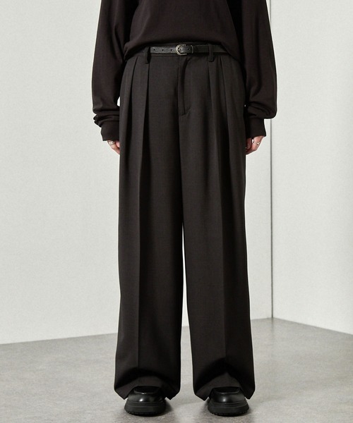 【Alfred Alex】ウールライク 2タック ストレート バギースラックス【セットアップ対応】