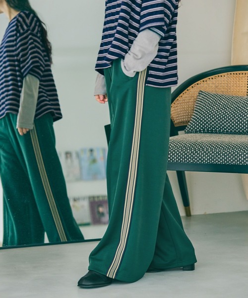 スポーティー×上品でワンランク上の着こなしに!■素材特性丈夫で適度な伸縮性のあるポリエステル素材を使用。しわや型崩れにも強く、長く重宝できるアイテムです。■デザイン自由な着こなしが叶う、大人カジュアルなスウェットパンツ。ウエストはゴム仕様で、内側のヒモでもサイズ調整できます◎サイドラインとセンタープリーツがコーデのアクセントとなり、脚長効果のあるきれいなシルエットを作ってくれます。裾はたゆませてルーズさを出すも良し、絞ってメリハリを出すも良し!様々なムードにマッチする1着です。■おすすめスタイリングシンプルなシャツやブラウスと合わせれば、パンツの存在感が際立ち、こなれ感のあるスタイリングになります。あえてきれいめなパンプスやミニバッグを合わせたMIXスタイルもオススメです!・ウエストゴム:あり・ポケット:あり・裏地:なし・裾絞り:あり※サンプルにて撮影をしておりますので、実際の商品とは仕様や加工・サイズ等が若干異なる場合がございます。※屋外の光や照明の当たり具合で、実物と色味が異なって見える場合がございます。詳細画像の色味をご確認ください。 なお、商品の色や質感を出来るだけ忠実に再現するよう心掛けておりますが、パソコンなどの環境により、実物と若干異なる場合がございます。※取扱いアイテムは店舗により異なる場合がございます。※写真を許可無くコピー・転用することは固くお断りします。