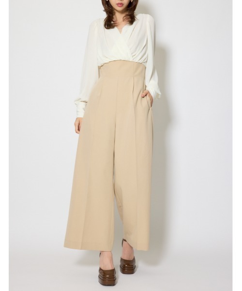 【オケージョンシーンにも◎1枚で決まるきれいめロンパースが登場!】 ■ポイント トップス部分は軽やかなジョーゼット素材を使用し、程よい透け感と柔らかさが女性らしさをぐんと引き上げてくれます。パンツ部分は落ち感ある素材を使用し、綺麗なシルエットになるように仕上げました。 どの角度から見ても美しいロンパースです! ■ディテール 前はカシュクールデザインでデコルテ周りをきれいに魅せ、後ろは華やかなリボンデザインになっています。 肩にはストラップが付いて安定しているので、着心地も抜群です! ■スタイリング パールのアクセサリーやパンプス合わせでオケージョンシーンにも着用していただけます。 ■生地 透け感:トップス部分:あり、パンツ部分:なし 裏 地:パンツ部分あり 伸縮性:なし 光沢感:なし 厚 さ:トップス部分:薄手、パンツ部分:中肉 ■商品のお気に入り登録 お気に入りアイテムの再入荷・在庫1点などの通知を受け取ることができます。 ■ブランドのお気に入り登録 新作アイテムの入荷や人気アイテムの再入荷、おすすめトピックスなど、いち早くブランドの情報を受け取ることができます。 [注意事項] ※弊社管理上のカラーを表記しており、タグのカラー表記と異なる記載となっている場合がございます。 ※商品画像の色味は、屋外や屋内の光の照射や角度により実物と色味が異なる場合がございます。 ※着用、お取り扱いの際は、アテンションタグをご確認ください。 rienda BRAND CONCEPT 女性らしさに大人なエッジを効かせ 艶やかさに人を魅了させる そんなセンシュアルなデザインを表現 ~The beauty of being yourself is essential~ こちらの商品はrienda独自の採寸方法となっています。本サイトのサイズガイドと採寸方法が異なる場合がありますのでご了承ください。