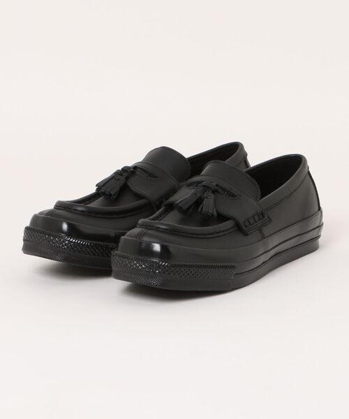 スクエアトウのレザーシューズをモチーフにした「オールスター スクエアトウ」のパターンアレンジモデル。ローファーパターンを採用。取り外し可能なタッセルパーツで雰囲気を変えて着用可能。ほどよいツヤ感のある上質なスムースレザーをアッパーに採用。レザーシューズのような佇まいを意識しながらもスニーカーらしい履き心地のよさにもこだわった一足。【メーカーカラー表記/JUN表記】BLACK/01【メーカーサイズ表記/JUN表記】7.5(26.0)/268.5(27)/279.5(28)/28【メーカー型番】31316981【CONVERSE/コンバース】1908年、アメリカのマサチューセッツ州にてマーキス・M・コンバースが創業したシューズブランド。アメリカの作業員向けにラバーシューズの製造を行っていた同社は、1917年よりバスケットシューズの製造を開始。 後にアイコンスニーカーとなる「オールスター」を生み出す。スニーカーでは「オールスター」をはじめ「ジャックパーセル」「ワンスター」などが、代表的なモデル。いずれも誕生から現在に至るまでスニーカー界の定番として世界的な人気を博している。※撮影場所やライティング、お使いのモニター環境によって色の見え方が異なる場合がございます。※一部の箱に配送の際についてしまった、へこみなどがある場合がございますが、商品に問題はございません。