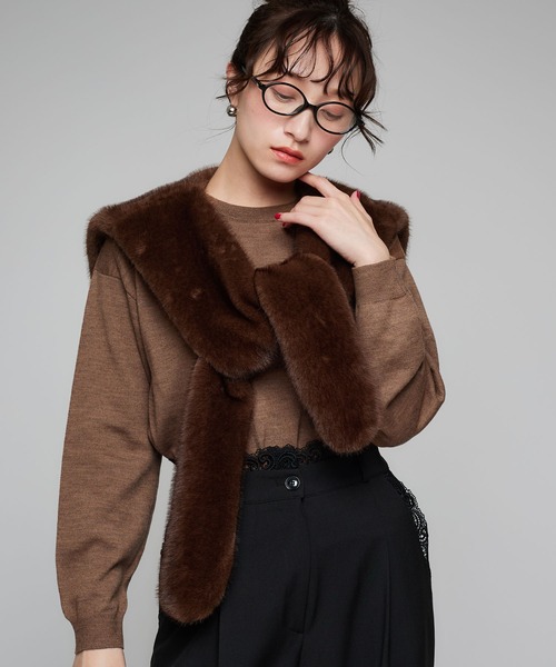 エコファーベストマフラー 【ポイント】 重くなりがちな冬コーデを彩る、プラスワンアイテムが登場。 適度なボリューム感で、コーディネートに取り入れやすいです。 【デザイン・シルエット】 肩にかけたときにベストのようなルックスに仕上がり、バックはセーラーカラーデザインが可愛らしいポイント。 フロント部分は垂らしたままでも、結んでも◎ 秋冬の防寒アイテムとしてはもちろん、コーディネートのワンポイントとしてもっておきたい旬のアイテムです。 【おすすめのスタイリング】 シンプルなトップスやアウター・ワンピースの上から着用するだけで、お洒落度がアップ。 大人女性にぴったりな落ち着いたお色味なので挑戦しやすいプラスワンアイテムです。 【素材】 ふんわり癖になる肌触りのエコファーを採用。 裏地を使用することでボリューム感を抑えレイヤードがコンパクトにできるよう仕上がってます。 ※ご覧のモニター環境や撮影環境により実の商品と多少色味が異なって見える場合がございます、ご理解の程を宜しくお願い致します。 ▼商品のお気に入り登録をおススメ致します☆サイズやカラー横のハートマークをクリック! 完売カラーの再入荷や、ラスト1点の通知、セールの際の通知を受ける事ができます。 お気に入り登録も宜しくお願い致します♪
