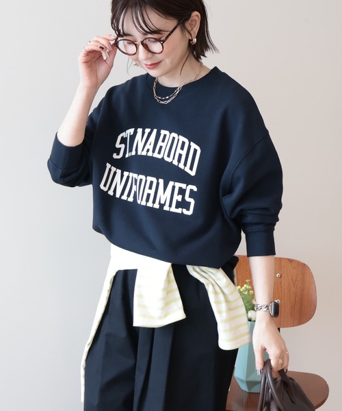 大人の余裕を感じるカレッジロゴスウェット程よく力の抜けたカレッジロゴが印象的な一枚です。裏毛素材を使用しているため、やわらかな肌ざわりで季節を問わず着やすいのが魅力です。身幅にゆとりを持たせたシルエットは、体のラインを拾いにくく、自然とこなれた雰囲気を演出してくれます。デニムやスラックス、スカートまで幅広いアイテムと相性が良く、着回し力の高さもポイントです。一枚でさらっと着るだけで、カジュアルながらも大人らしい落ち着いたスタイリングが完成します。レイヤードもしやすく、シャツやカットソーを合わせることで季節感のある着こなしも楽しめます。日常使いからお出かけまで活躍し、毎日のコーディネートに取り入れやすい万能なスウェットです。透け感[なし]生地の厚さ[厚手]光沢感[なし]伸縮性[ややあり]裏地[なし]ポケット[なし]※モデル着用画像は、光の当たり具合で色味が違って見える場合がございます。※お使いのモニター環境によって商品の色味が違って見える場合がございます。【ご注意事項】※サンプルにて撮影を行っております。※実際にお届けする商品と仕様やサイズが異なる場合がございます。●AMERICAN HOLIC ● (アメリカンホリック)大人の女性の毎日を軽やかで豊かにするブランド。カジュアルなのにオシャレ、コーディネートも楽。ONにもOFFにも等身大で楽しむオトナの日常着をテーマに、スタイリッシュかつ自然体を楽しめるカジュアルスタイルを提案します。 ▼ 商品のお気に入り登録がおすすめです ▼商品ページ内のハートマークをクリック。完売時の再入荷や、最後の1点の通知、お得なお値下げの際の通知を受ける事ができます。【お知らせ】ページでも通知が確認できます。