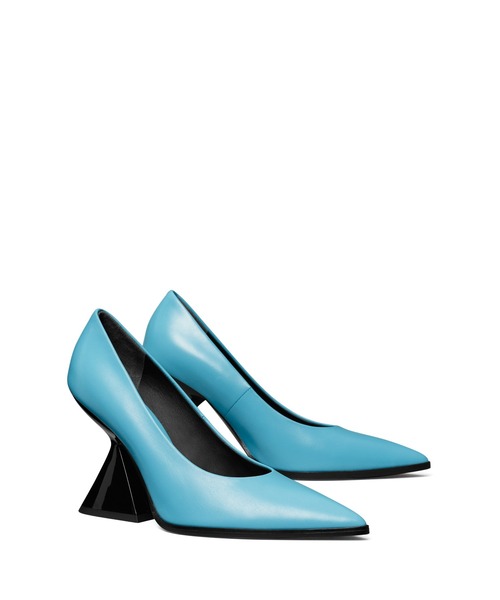 クラシックなパンプスを幾何学的にアレンジ。彫刻のような斬新なデザインの新作シューズ。トライアングルヒールとシャープなポインテッドトゥをあしらいました。クッション性のあるフットベッドで快適な履き心地を実現。オフィスでも、パーティーでも活躍する一足です。ラッカー仕上げのABS樹脂製ヒール(ヒールの高さ100mm)レザーアッパークッション性のあるレザーフットベッドナパレザーのライニングやや光沢のあるカーフレザーのソール保存袋付き