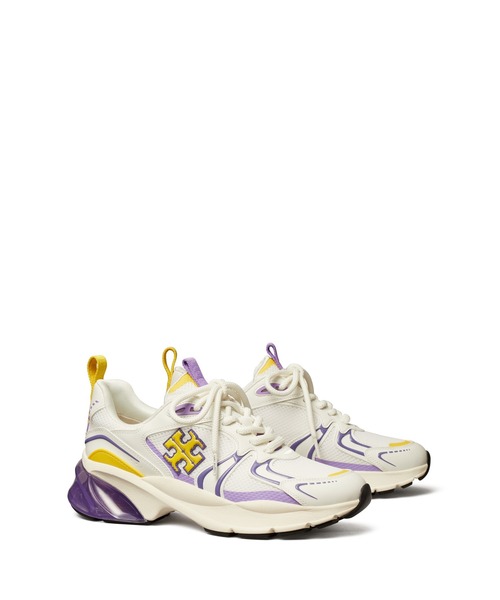 幸運のシンボルであるウィッシュボーンを象ったパーツを、ソールに埋め込んでいます。前進するためにデザインされたこのスニーカーで、運を掴みに行きましょう。世界各地の幸運のシンボルは、Toryを魅了し続けてきました。イーヴィルアイや、木をたたくおまじない。旅行に必ず持って行く赤いリボンも、一家に伝わるおまじないです。さらに快適に、より機能的に。新デザインで登場したグッドラック トレーナー。足元を美しく演出するライン、脚を長く見せる深めのアンクルスクープ、リフトアップ効果のあるオーバーサイズのエルゴノミックソール。半透明のヒール、斜めに配したダブルTロゴ、コントラストカラーのシューレース2セットを備えています。サポート力と柔軟性を両立させた革新的な構造です。クッション入りミッドソール内のウィッシュボーンがアーチサポートの役割を果たし、シューズ内部のサポート機能を補強します。・PUファブリック、メッシュアッパー・メッシュのフットベッドとライニング・EVA、半透明のTPU、ラバーのソール・レースアップ・保存袋付き