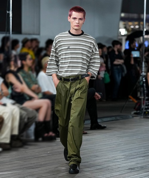 "裏地に潜む遊び心が、歩みに滲む" ワイドなシルエットにテーパードを効かせたツイルパンツ。 打ち込みの良いしっかりとしたTCツイルが、存在感のあるラインを描き出す。 裾裏にはオリジナルのバンダナ柄をプリント。 そのまま着用すれば静かな佇まいを見せ、 折り曲げればさりげなく柄が覗き、スタイルに奥行きを与える。 オールシーズンを通して着こなせる一本。 ■ワイドでテーパードを効かせたシルエット ■打ち込みの強いTCツイル素材 ■裾裏にオリジナルのバンダナ柄プリント ■そのままでも折り曲げても映える仕様 ■サイズと体型の目安S:160~175cm / 50~70kg (US / XS) M:165~180cm / 60~80kg (US / S) L:170~185cm / 70~90kg (US / M) XL:175~190cm / 80~100kg (US / L)