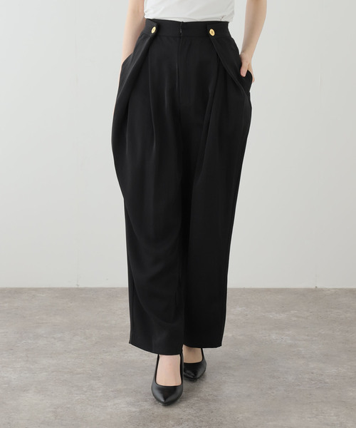 【2026SS】LaTotaliteきれいめにもカジュアルにも振れる、存在感のあるタックパンツ。フロントのボタンディテールと立体的なタックが、腰まわりをすっきり見せながら程よいボリューム感を演出します。ワイドすぎないシルエットで、トップスを選ばずバランス良く着られるのも魅力。シンプルなニットやシャツを合わせるだけで、こなれたスタイリングが完成します。※取り扱いについては、商品についている品質表示でご確認ください。※照明の関係により、実際よりも色味が違って見える場合があります。またパソコン・スマートフォンなどの環境により、若干製品と画像のカラーが異なる場合もございます。※商品の色味は、商品アップ画像をご参照ください。モデルサイズ:身長:163cm 着用サイズ:36本体:洗濯機洗い(弱)