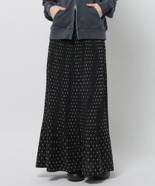甘すぎないドット柄が映えるオトナなプリーツスカート■素材特性シワになりにくく、程よい肉厚感のある軽やかな着心地が特徴のポリエステル100%素材です。■デザイン細かなドットが浮き出た「ドビー織り」の生地に、繊細なプリーツを施した表情豊かなロングスカート。腰回りはすっきりと、裾に向かって広がるフレアラインが、体のラインを拾わず綺麗なシルエットをキープしてくれます!マットな光沢と立体的なドットのコントラストが、シンプルになりがちなスタイルを表情豊かに彩ってくれる1着です。■おすすめスタイリングショート丈のジップパーカーやスウェットとのカジュアルミックススタイルが◎コンパクトなリブニットやブラウスをインしてジャケットを羽織れば、ドット柄が程よいアクセントになった、堅苦しくなりすぎないオフィスコーデの完成します!・ウエストゴム:あり・ポケット:あり・裏地:あり※サンプルにて撮影をしておりますので、実際の商品とは仕様や加工・サイズ等が若干異なる場合がございます。※屋外の光や照明の当たり具合で、実物と色味が異なって見える場合がございます。詳細画像の色味をご確認ください。 なお、商品の色や質感を出来るだけ忠実に再現するよう心掛けておりますが、パソコンなどの環境により、実物と若干異なる場合がございます。※写真を許可無くコピー・転用することは固くお断りします。