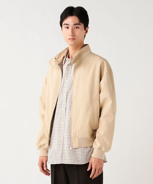 クラシックなデザインをモダンなシルエットに ■デザイン ドッグイヤー襟を採用したクラシックな雰囲気のブルゾン。リラックス感のあるシルエットと、スッキリとしたショート丈のバランスが「いまどき」な仕上がりに。シンプルなデザインながら、素材使いとディテールで存在感を放つひと品です。 ■コーディネート きれいめなスラックスやチノパンと合わせれば、上品なカジュアルスタイルが完成します。デニムと合わせたラフな着こなしも、大人の落ち着いた印象に。インナーにシャツやニットを合わせることで、季節感のあるレイヤードスタイルも楽しめます。 ■素材 表地には独特な手触りと上品な表情を併せ持つナイロンコットンツイル素材を使用。裏地には小柄チェック素材を採用し、着用時や脱いだ際のさりげないアクセントをプラスしています。 ■ケア方法 ドライクリーニングのみ可 ※クリーニング店にご相談ください (詳細は商品についている品質表示ラベルをご覧ください) ※光の当たり具合やパソコンなどの閲覧環境によって実際の色味と異なって見える場合がございます。予めご了承ください。 ※商品の色味は商品単体で撮影した画像をご参照ください。