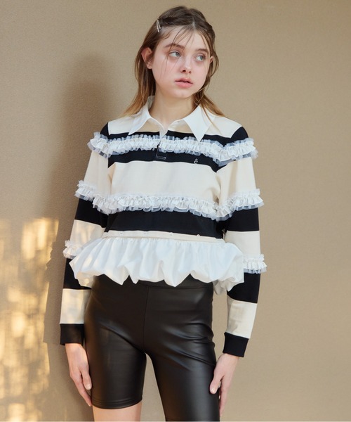 バルーンヘムラグビーシャツ ◆point 裾のバルーンがトレンド感のあるラグビーシャツ。 バルーン部分はスナップボタンで取り外し可能です。 半分だけ外したり、全部外したりと、いろんなスタイリングをお楽しみいただけます。 左胸の「ê」のロゴ刺繍がアクセントに! ◆fabric 綿混のさらっとした生地を使用 ………………………………………… 厚み:普通 透け感:なし 伸縮性:あり 光沢感:なし ポケット:なし 裏地:なし 着脱方法:被りで着脱 ………………………………………… ◆coordinate バランスの良い丈感とボリュームで、ボトムを選ばない万能トップスです! バルーン部分を外すと短丈のトップスとしてもお使いいただけるので、ハイウエストのボトムやボリュームたっぷりのフレアスカートとのコーディネートもおすすめです。 ◆color mocha / black / gray(grayの量産時は袖口のリブが白に変更になりますのでご了承ください。) - etre loin | エトルワン - フランス語で、もの思いにふけること。 大人のためのロマンティックで可愛いを叶えるブランド。 ♡公式instagram:etreloin ■お気に入り登録 アイテムのお気に入り:再入荷/ラスト1点/セールなどをお知らせいたします。 ブランドのお気に入り:新商品の販売情報などをお知らせいたします。 ※撮影環境により、実際よりも色味が違って見える場合がございます。また、お使いの端末によって製品と画像のカラーが若干異なる場合もございますので、予めご了承ください。 ※撮影はサンプル品を使用しており、モデル写真と表示のサイズが若干異なる場合もございます。予めご了承ください。