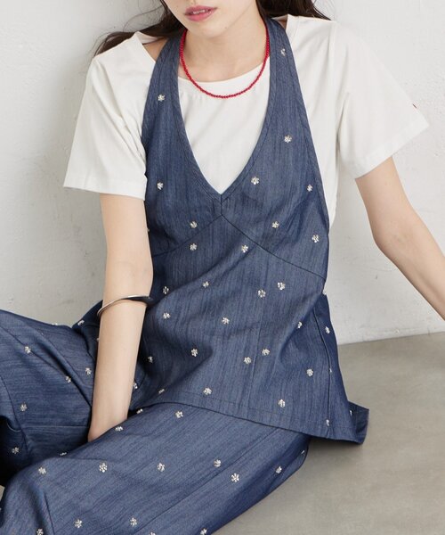 フラワービジューがアクセントに◎華やかなレイヤードスタイルが完成するホルタービスチェ ●デザイン ・フラワービジューがアクセントになり、程よい光沢感が上品さをプラスする一枚。 ・深めのVネックとホルターデザインが顔周りをすっきり見せ、インナー次第で印象チェンジもできます。 ・いつものスタイリングに重ねるだけで、ムードに仕上がります。 ●スタイリング ・デニムやスラックス合わせると、上品さを残しつつ甘さをすこし抑え大人っぽくまとまります。 ・ワイドパンツやたいとスカートでシルエットにメリハリをつけるのもおすすめです。 ・シンプルなスタイリングに合わせるだけで、華やかさをプラスしたコーデが完成します。 ・同素材のビジーフラワースラックスとのセットアップスタイルもおすすめです。 ●おすすめスタイリングアイテム ビージーフラワースラックス バックロゴプリントちびT ポインテッドトゥストラップパンプス <製品の取り扱い注意> ・雨や汗による、濡れた状態での使用は、色落ちや色移行の原因となる場合がありますので十分にご注意下さい。 ・摩擦により淡い色のものとの重ね着や、イス、バッグ、ベルトなどへ色移りしますのでご注意ください。 ・本製品は洗濯の繰り返しや着用による摩擦などで色が薄くなっていきます。ご了承ください。 ・濃色は摩擦(特に湿った状態での摩擦)や、汗や雨などでぬれた時は他の衣料や下着に色が移る事がありますので、ご注意下さい。 ----------------------------------------------------- 洗濯:家庭洗濯不可/ウエットドライクリーニング不可 アイロン:低温120℃まで スチームなし(あて布使用) タンブル乾燥:不可 伸縮性:なし 光沢感:少しあり 生地の厚さ:うすめ ------------------------------------------------------ ▼商品のお気に入り登録 お気に入りアイテムのセール通知や完売カラーの再入荷通知、在庫残り1点などの通知を受け取ることができます。 ▼ブランドのお気に入り登録 新商品や再入荷、セール、クーポン配布などお得な情報をいち早く受け取ることができます。 ▼メルマガ登録 mysticのお得な情報やニュースを一足先にお届けします。 ------------------------------------------------------ 商品について ※ご注文いただいた予約商品のお届け時期の確認は、注文履歴ページより行えます。 ※サイト上のカラー名と、お届け商品に記載されているカラー名が異なる場合がございます。 ※商品の色味は、撮影場所や光のあたり具合などにより色味が違って見える場合が御座います 。 また、お客様のお使いのPCのモニター環境などにより色味が違って見える場合が御座います。予めご了承の上ご注文下さい。