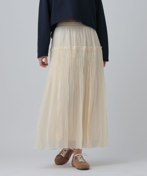 春らしいシアー感が特徴のフレアスカート【デザイン】高い位置に切り替えがあるので、綺麗に着用することができます。軽やかに見えるスカートなので涼しげでこれからの季節にぴったりです!【スタイリング】・トップスとシューズは重量感のあるスウェットや厚底系のアイテムとの合わせがおすすめです。---------------------------------------------------【気になる商品はお気に入り登録がおすすめ!】・在庫残りわずか・再入荷・セールの情報などの通知を受け取ることができます。気になる商品は♡をクリックして、「お気に入り登録」しましょう!【ショップ・ブランドのお気に入り登録も!】新商品や再入荷、セール、クーポンの配布など、いち早くお得な情報を受け取ることができます。---------------------------------------------------