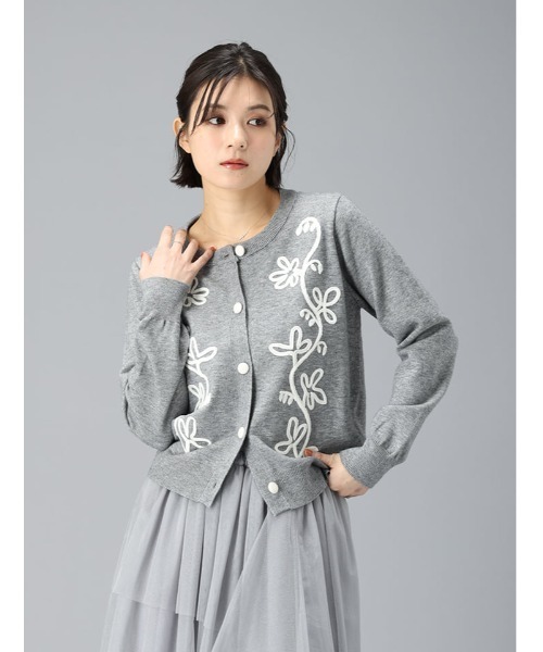 クラフト感漂う緻密なデザインが目を惹く、コード刺繍ニットカーデ。身頃にあしらわれた立体感ある刺繍が、平面的なニットにはない奥行きと芸術的なニュアンスを演出し、纏うだけで顔周りを華やかに彩ります。程よい厚みの編地と計算されたシルエットにより、季節の変わり目の軽やかなはおりでも、ボタンを閉じてプルオーバー感覚のトップスでも楽しめる汎用性の高さが魅力です。コード刺繍ならではの凹凸がスタイリングにリズムを生み出し、シンプルなデニムやスラックスと合わせるだけで、都会的で洗練された佇まいが完成します。日常のコーディネートに程よい個性を添えつつ、上品な印象をキープできる、ワードローブの主役として長く愛用したい一着です。
