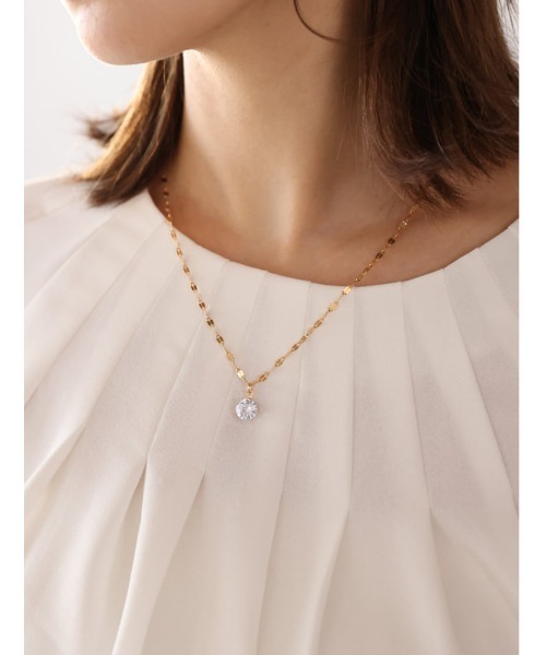 胸元に繊細な煌めきを添えるブリングストーンチェーンネックレス。粒のストーンが光を細やかに反射して顔周りを華やかに彩ります。存在感を放ちつつもチェーン自体が細身で洗練された仕上がりのため、大人の女性にふさわしい上品な佇まいを演出します。シンプルなクルーネックのニットやデコルテが開いたシャツのインナーに忍ばせるだけで、日常のスタイリングを都会的にクラスアップ。単体での着用はもちろん、お手持ちのペンダントとのレイヤードスタイルも楽しみやすく、幅広いファッションに調和する汎用性の高さが魅力です。カジュアルなデイリーコーデのアクセントから清潔感が求められるオフィスシーンまでシーンを選ばずマルチに活躍。ミニマルなデザインの中に宿る繊細な輝きが、纏う人の美しさをさりげなく引き立ててくれるワードローブに欠かせない一本です。